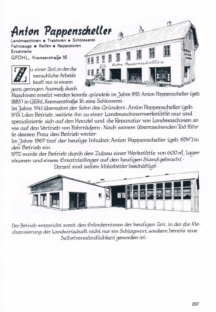 Pappenscheller Anton, Handel mit landwirtschaftlichen Maschinen, Kraftfahrzeugmechanikergewerbe, Gföhl