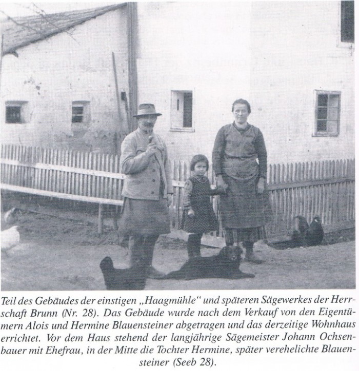 damalige Haagmühle der politischen Gemeinde Seeb zugehörig. In den Wirtschaftsbüchern der Herrschaft Brunn wurde das Haus als „Seeber Säge“ geführt, im Volksmund „Brunner Säge“ genannt. Während